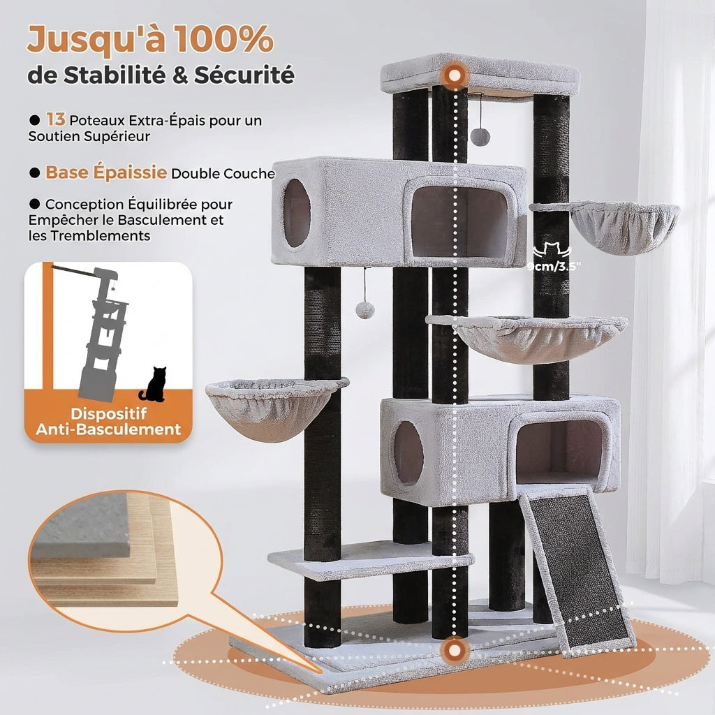 Ce grand arbre à chat est tout simplement génial ! Dès le montage (facile et bien expliqué), mon chat s’est précipité dessus et ne le quitte plus. Il adore grimper, se cacher dans les niches, observer depuis les plateformes en hauteur et faire ses griffes sur les nombreux poteaux en sisal. La structure est solide et stable, même quand mon chat saute de plateforme en plateforme à toute vitesse. Le design est élégant et s’intègre parfaitement dans mon salon. Les matériaux sont doux, confortables et semblent vraiment durables. Il y fait ses siestes, ses séances d’escalade et ses moments de jeu. Un vrai espace multifonction qui lui offre tout ce dont il a besoin. Je recommande à 100 % pour les chats actifs ou simplement curieux !